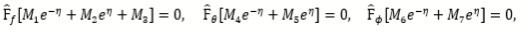 are the general solutions where Mi are the arbitrary constants for i=1-7 and fm* (η) ,θm* (η), ϕm* (η) are special solutions.