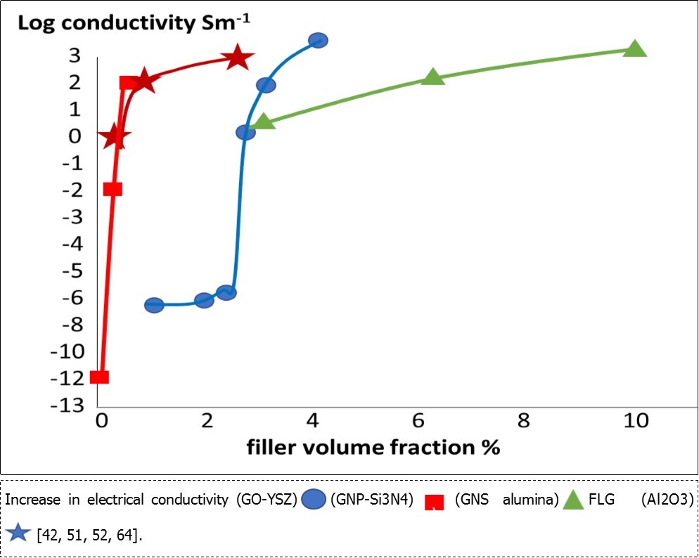 Figure 6.Increase in electrical conductivity (GO-YSZ) (GNP-Si3N4) (GNS alumina) FLG (Al2O3) [42, 51, 52, 64].![Increase in electrical conductivity (GO-YSZ) (GNP-Si3N4) (GNS alumina) FLG (Al2O3) [42, 51, 52, 64].](/article/773/images/image10.jpg)