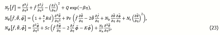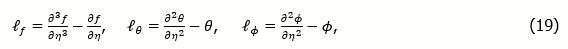 where p∈[0,1] is a typical embedding parameter and ĥf, ĥθ, ĥϕ are so-called auxiliary parameters with Nf, Nθ, Nϕ are the non-linear operators. For p=0,1, we have: