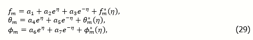 where ai are constants for i =1-7 and fm*(η), θm*(η),ϕm*(η)are special solutions.