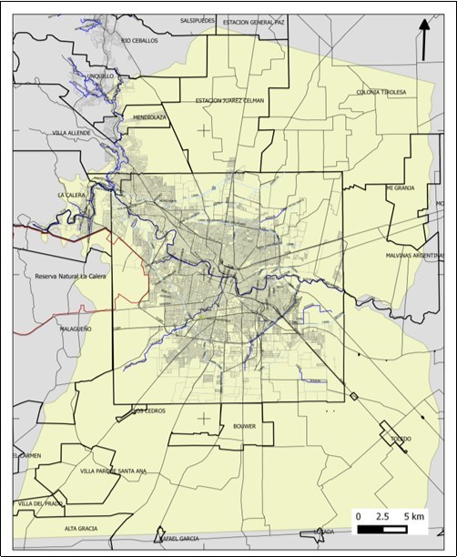Based on data collected from inter-institutional participative workshops, surveys to producers, satellite data, as well as on the use of GIS, we propose 1) characterizing the GBC by mapping the urban area of Córdoba city in 1974 and 2014 and determining the urban growth over that 40-year period and 2) determining the current agricultural land cover and use and the changes in agricultural parceling.