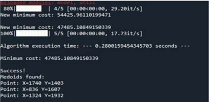 All the proposed algorithms has been implemented using programming language python. From the experimental results, the graphical representation shows that CLARANS has a low execution time value compared to other algorithms for (k = 3 (0.21; 0.36)), (k = 10 (0.60; 0.68)) even if we have to change the value of k, and also the size of dataset but PAM has a longer execution time.