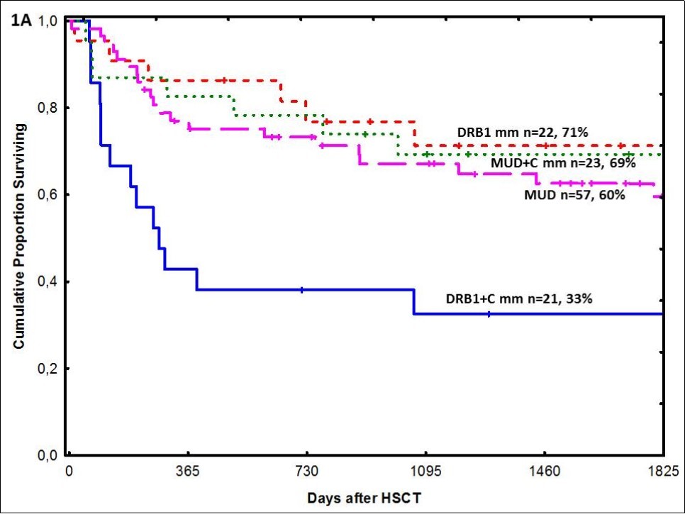 Figure 1D.after allogeneic stem cell transplantation in patients with unrelated donors, according to the type of HLA mismatch.