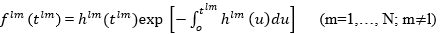Where flm (.), is the density function of times to transition from state l to state m, and hlm (.) is the associated hazard function.