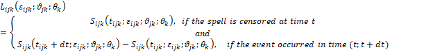 This general formulation allows εijk, ϑjk, θk to be function of time. By exponentiating the term in brackets, equation (4) ensures that the hazard function is positive as required since it is a conditional density function. From the multilevel survival formulation in (4), the survivor function at time t is;