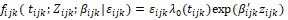 Here ρijk (tijk) =exp[-Λijk(tijk)] and Λijk(tijk)is the integrated hazard corresponding to