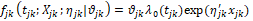 Where λ0 (tijk) represents the baseline hazard, which we assume to be piecewise constant, andexp (α' xijk) is the risk associated with covariates Xijk