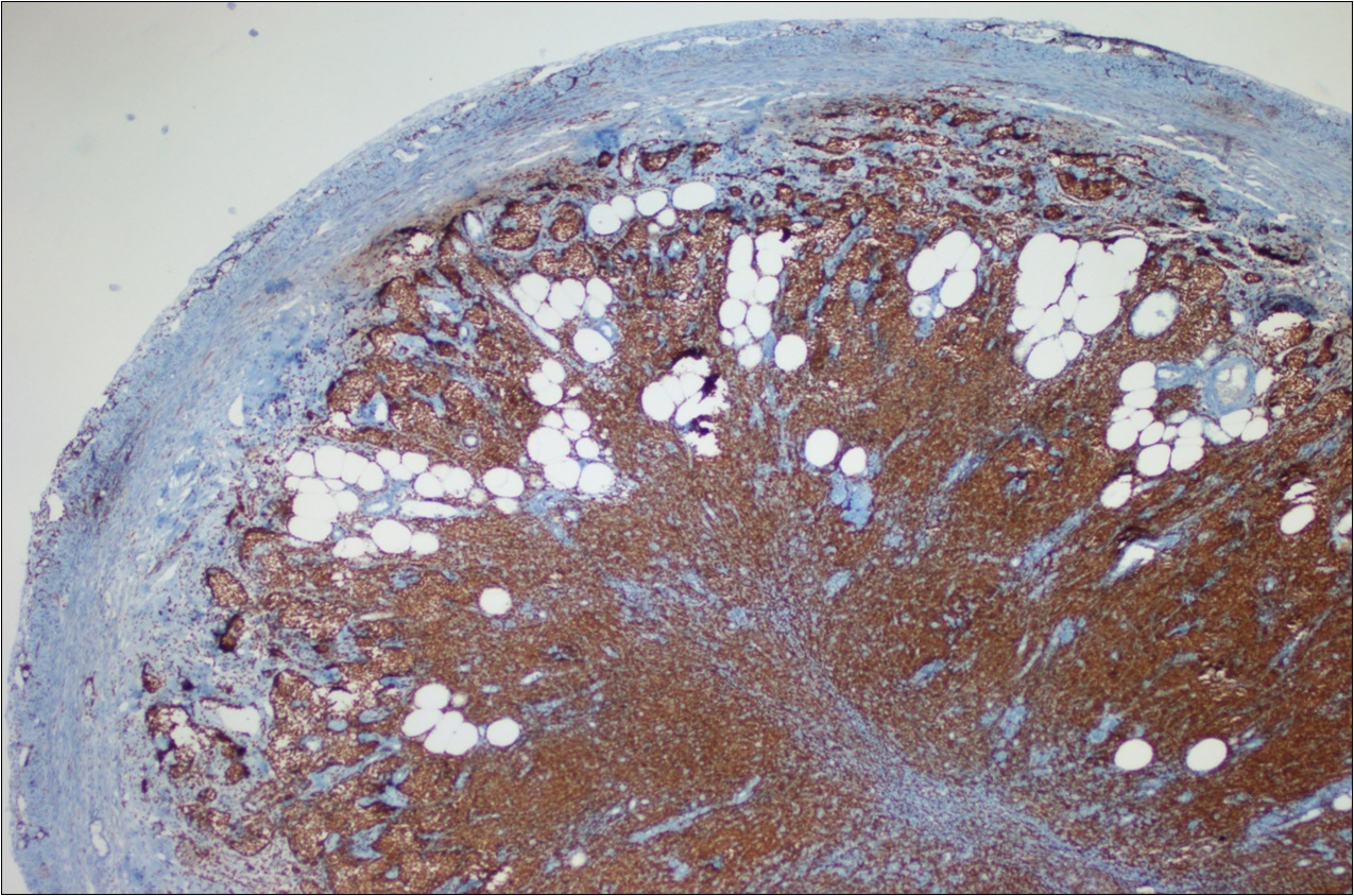 There are some hypotheses suggesting the etiology of collision tumors. One hypothesis is that the two primary tumors arise in continuity through a chance accidental ‘meeting’. Another hypothesis is that the presence of the first tumor alters the microenvironment, precipitating the development of the second adjacent tumor 6.