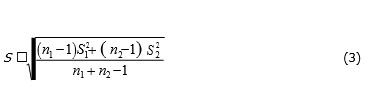 In formula (3), n1 is the sample size of the experimental group, n2 is the sample size of the control group, S1 is the standard deviation of the experimental group, S2 is the standard deviation of the control group, and S is the combined standard deviation.