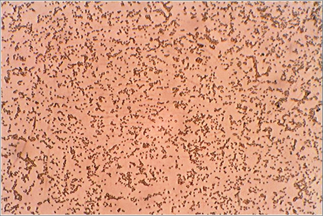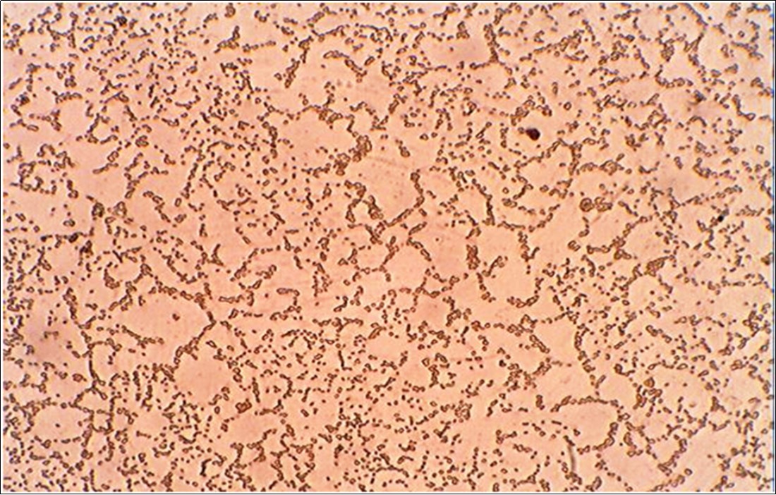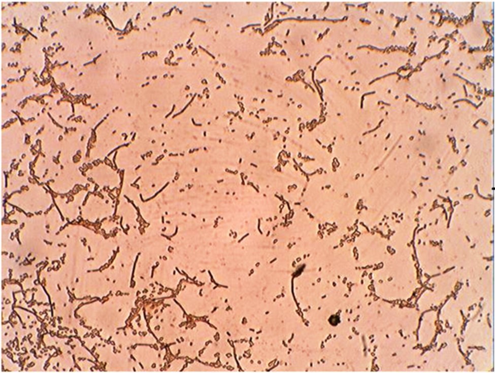Gram negative cocci, mono cocci, streptococci, vibrio, gram negative rod, gram positive staphylococcus, gram positive streptococci and gram positive rod were observed in the selected sample. The most abundant types of bacterial species were; gram positive cocci, gram negative cocci and gram positive streptococci.