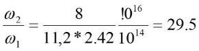 Accounting that the electron and positron radius re,p= 2.8*10-13cm, temporal frequency/energy = 2.42*1014 Hz/e.v., spatial frequency/energy= 8.06*103cm-1/e.v.,and considering the length of spatial waves 4*re,pif an electron and positron are next to each other we can get the ratio between the temporal frequency ω2 in (5) and the spatial frequency ω1 in (5):