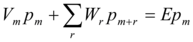 Consider if Vm are random numbers uncorrelated from site to site and distributed with a density ρ(Vm). The hopping amplitudes Wr, in contrast, will be taken to be nonrandom and to decrease fast for hops of increasing length r. As it was shown 5, 7 this case can be reduced to the standard mapping form. On the other hand, the process of interaction between a photon and electron or positron can be interpreted as a random one, which represents either penetrating of a photon through or reflecting from a potential barrier of the electron or positron field. That brings to the temporal form of coupled Shrodinger equations: