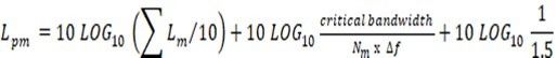 a) This method identifies a tone will be just audible when the sound pressure level of the tone is about 4 dB below the sound pressure level of the masking noise contained in the critical band centered around the tone. A tone will be identified as prominent if the sound power level of the tone is greater than the sound pressure level of the masking noise as determined by this equation: (from ANSI S1.13-2005 Annex A Equation A.10B, for ft < 1,000Hz).