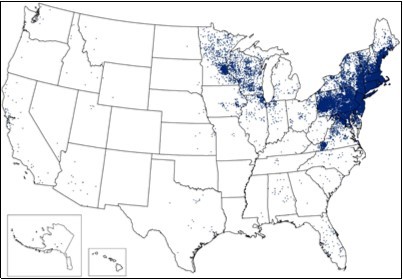 “Though Lyme disease cases have been reported in nearly every state, cases are reported from the infected person's county of residence, not the place where they were infected” 6.