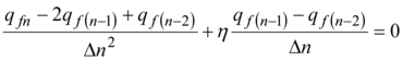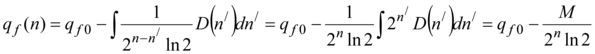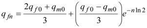 Constants of integration c1 also c2 we shall find on the basis of the initial conditions: at n=0 , q fn=q f0, and at n = 1 according to (4) qfn = qf1 = qmo + qf0 / 2. Thus: