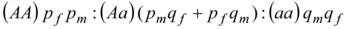 (AA)p2: (Aa)2pq: (aa)q2 …...(1)