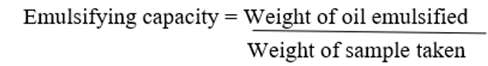 Emulsifying capacity was calculated as follows: