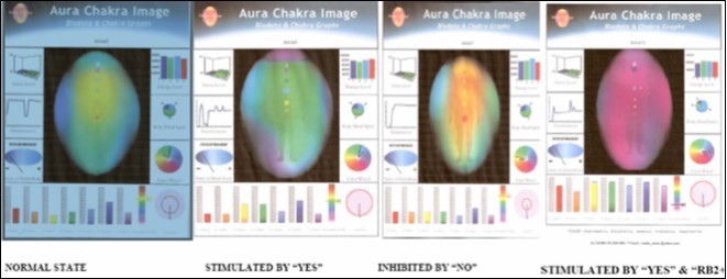 Figure 4.Stimulating or inhibitory modifications of the BPL states accorded to the simple 3 minutes of saying / thinking: YES / NO.