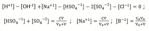 [HSO4-1] + [SO4-2] = cv/(V0+V); [CI-1] = C0V0/(V0+V)