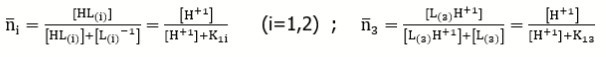 [H+1][L(i)-1] = K1i[HL(i)] (i=1,2) ; [H+1][L(3)] = K13[L(3)H+1]