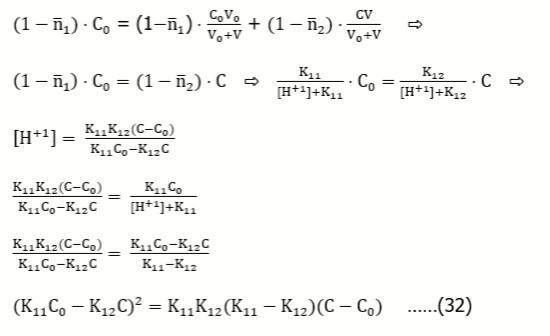 K1/[H+1] + K1 = C/C0 ⇨ [H+1] = K1 ⋅ (C0/C-1) …..(12)