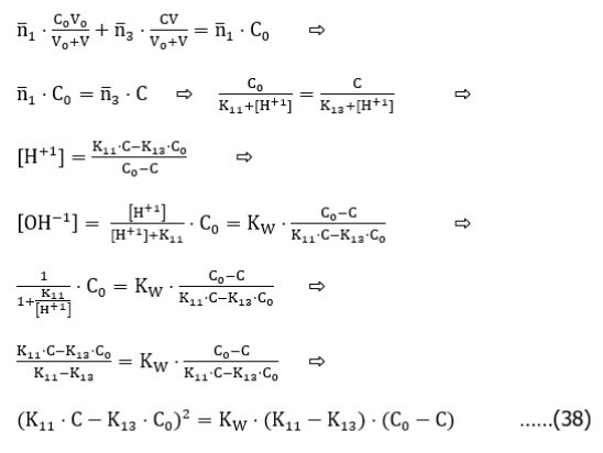 [OH-1] = KW/K1⋅ (C0/C-1)-1 ….(13)
