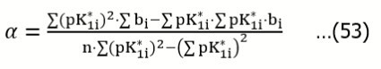 The slopes b, obtained from the series of n = 5 titrations were applied for evaluation of the true pK1 = pK1o value. Assuming the linear relation between b = bi and pK1* = pK1i*, we apply the regression equation