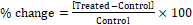 The % change in particle size, specific surface area (SSA), peak intensity, crystallite size, melting point, latent heat, weight loss and the maximum thermal degradation temperature (Tmax) of the Biofield Energy Treated sample was calculated compared with the control sample using the following equation 2: