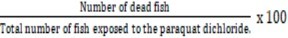 Mortality was established when they failed to respond to repeated prodding 28. Mortality rate of the fish samples were calculated as:
