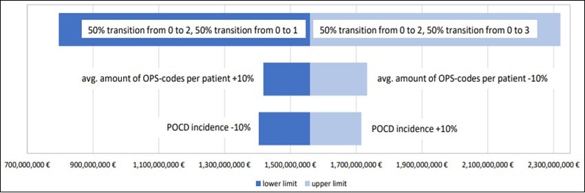 A strength of the present analysis lies in its transparency and the utilization of publicly available data, together with recently established POCD incidence rates in Germany and reasonable assumptions. However, the results of the sensitivity analyses vary – in one case even significantly – indicating the degree of uncertainty of assumptions and inputs that were used.