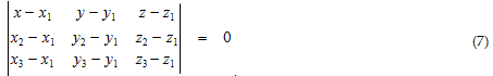 where (x1,y1,z1) (x2,y2,z2) (x3,y3,z3) – the coordinates of triangle vertices, (x,y,z) – coordinates of an arbitrary point.