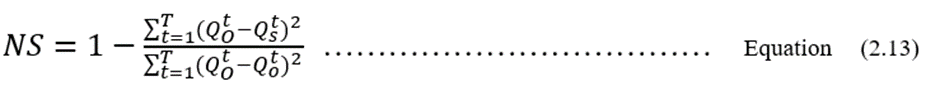 where: Qot is observed discharge at time t , Qst is simulated discharge at time t and Qot is average observed discharge