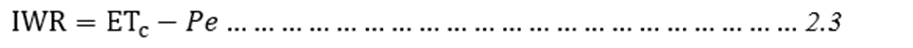 Where: IWR: Irrigation water requirement (mm/day), ETc: Crop water Requirement (mm/day), Pe: Effective Rainfall in mm
