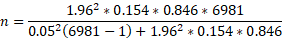 P= Estimated proportion = 15.42% so, p =0.154 7,9,13